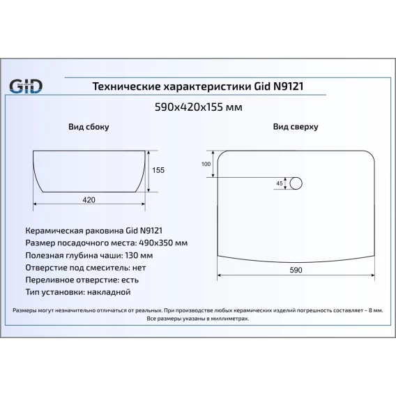 Раковина 50x38 см GID Simple N N9045