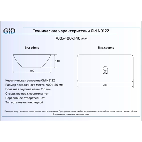 Раковина 48x37 см GID Simple N N9103