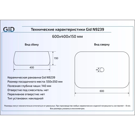 Раковина 60x40 см GID Simple N N9239