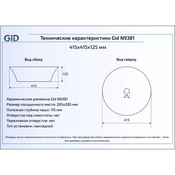 Раковина 41,5x41,5 см GID Simple N N9381