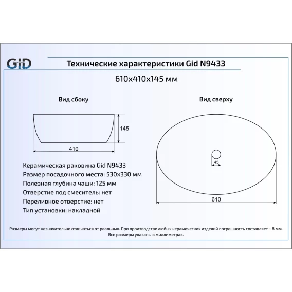 Раковина 61x41 см GID Simple N N9433