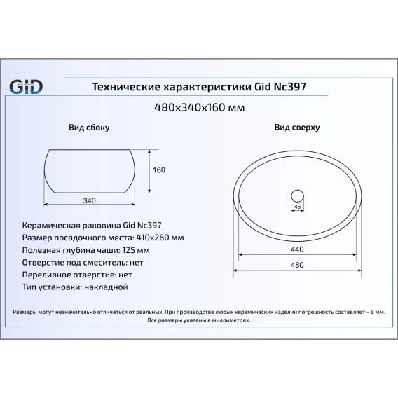Раковина 48x34 см GID Color Edition Nc397