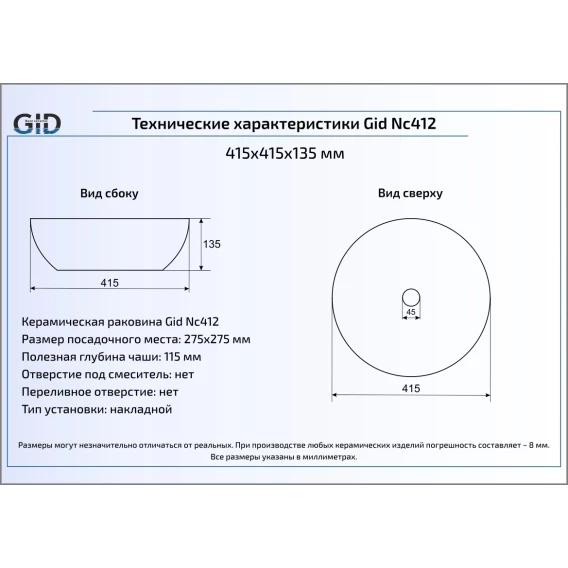 Раковина 41,5x41,5 см GID Color Edition Nc412