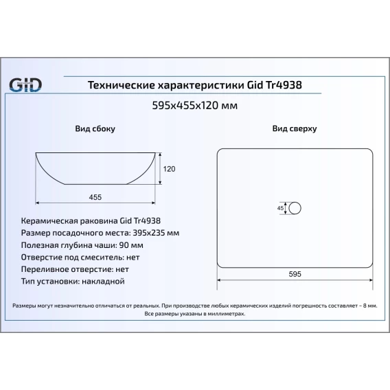 Раковина 59,5x45,5 см GID Simple N Tr4938