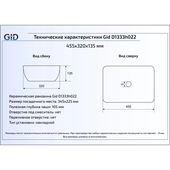 Раковина 45,5x32 см GID LuxeLine D1333h022