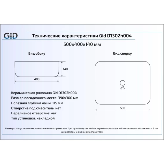 Раковина 50x40 см GID LuxeLine D1302h020