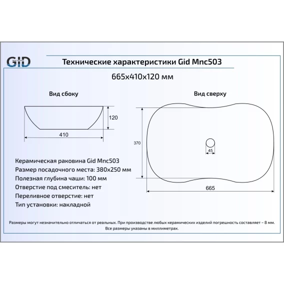 Раковина 66,5x41 см GID Stone Edition Mnc503H012