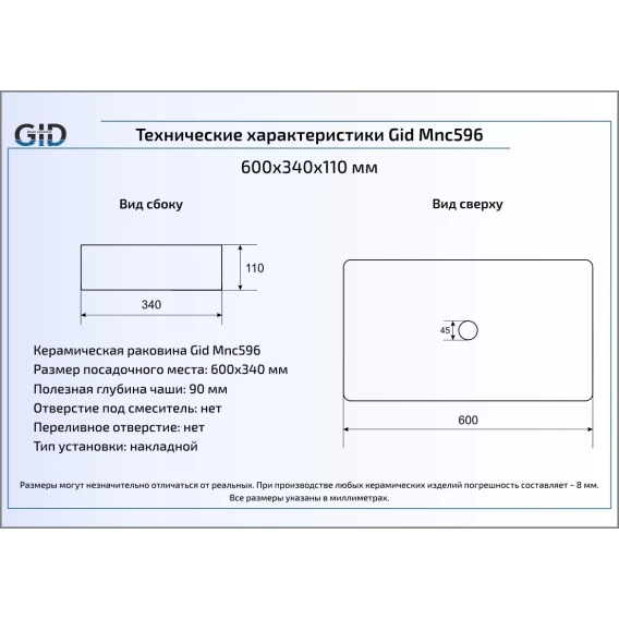 Раковина 41,5x41,5 см GID Stone Edition Mnc181