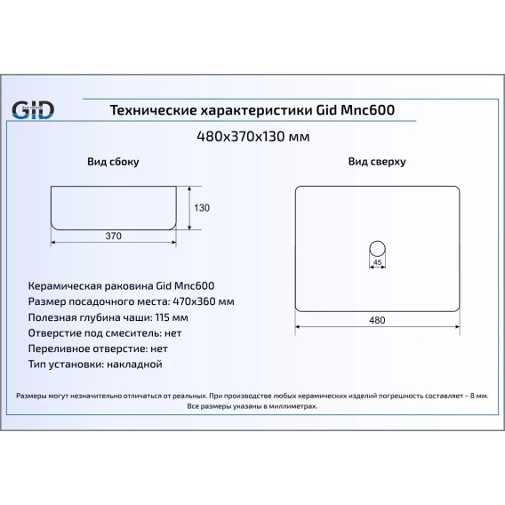 Раковина 48x37 см GID Stone Edition Mnc600