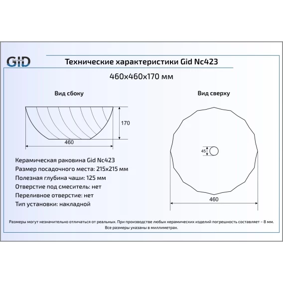 Раковина 46x46 см GID Color Edition Nc423