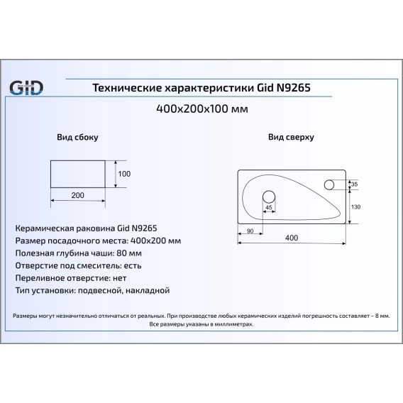 Раковина 40x20 см GID Simple N N9265
