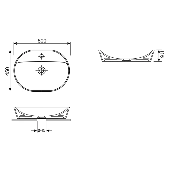 Раковина-чаша GSG Easy EALAVRE60034 60x42 см, накладная, песочный матовый