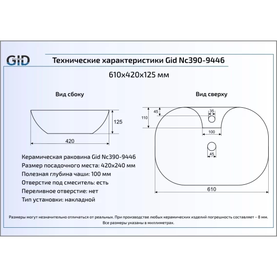 Раковина 61x42 см GID Color Edition Nc390-9446