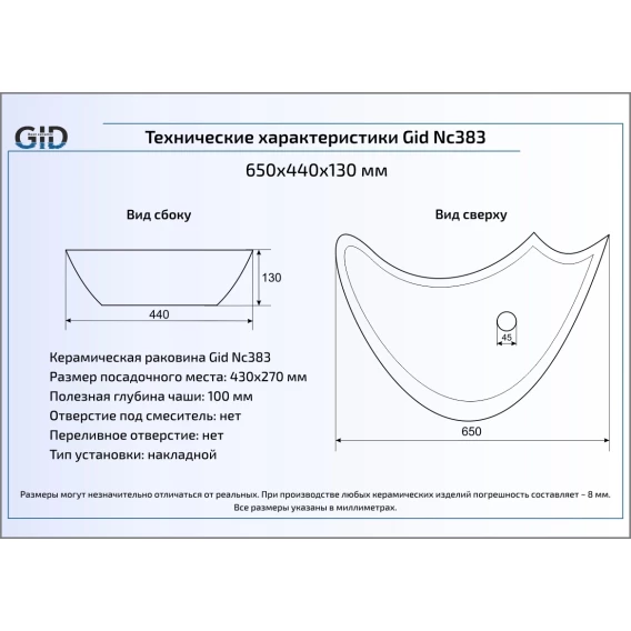 Раковина 65x44 см GID Color Edition Nc383