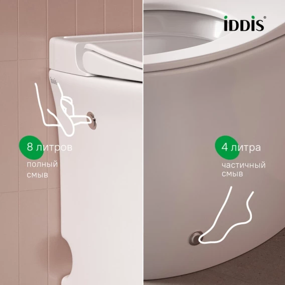 • Смыв управляется двумя электронными клавишами: верхняя нажимается рукой, нижняя – ногой;