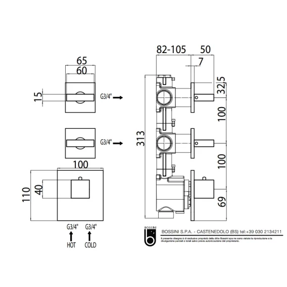Наружняя часть термостата на 2-4 потребителя Bossini Outlets Z033203.030