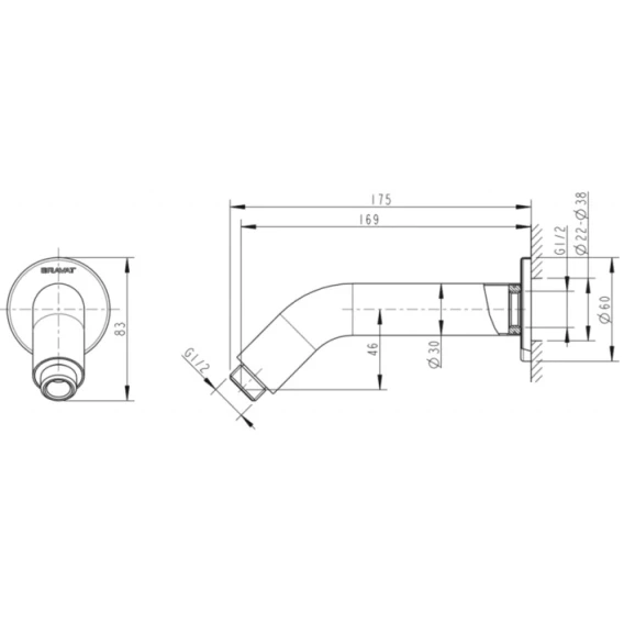 Кронштейн для душа 175 мм Bravat Built-in D312C-RUS