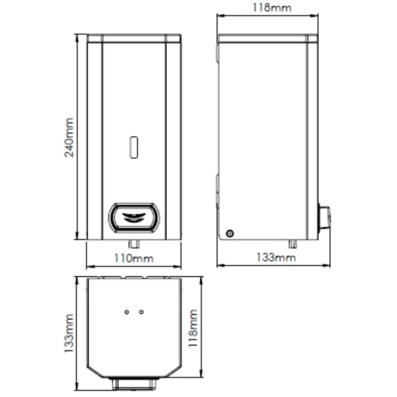 Дозатор пены для мыла емкостью 1,5 л, изготовлен из нержавеющей стали AISI 304, толщиной 0,8 мм, устанавливается непосредственно на стену и управляется вручную с помощью кнопки.