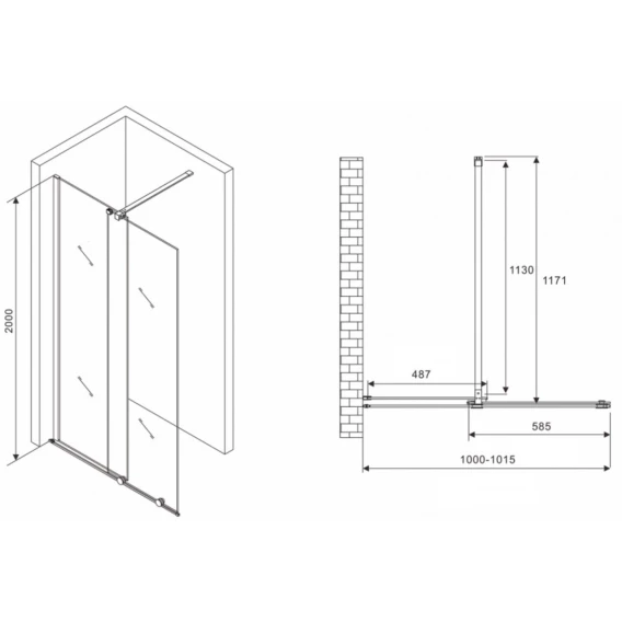 Неподвижная перегородка 100 см Abber Komfort AG09100B прозрачное