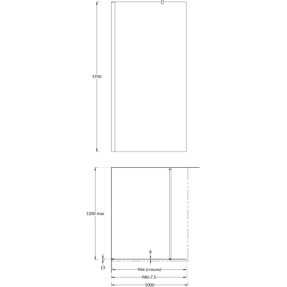 Неподвижная перегородка 100 см Kerama Marazzi Vetro VE.100.WI.BLK.M прозрачное
