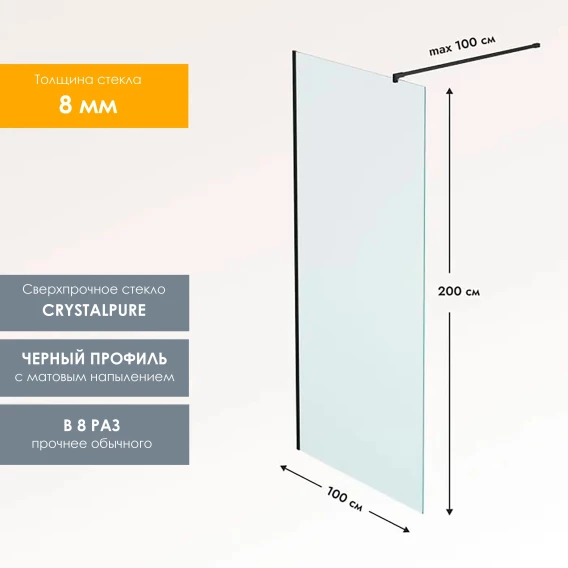 Неподвижная перегородка 100 см Reflexion Walk-in RX200100CBL-13 прозрачное