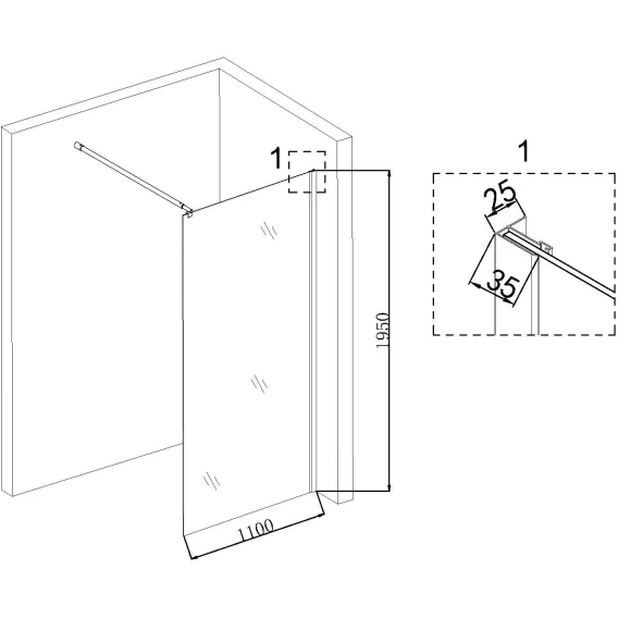 Неподвижная перегородка 110 см Niagara NG-683-11BLACK прозрачное