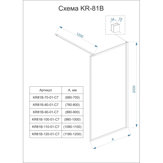 Неподвижная перегородка 120 см RGW WA-110 Walk-in 351011012-11 прозрачное
