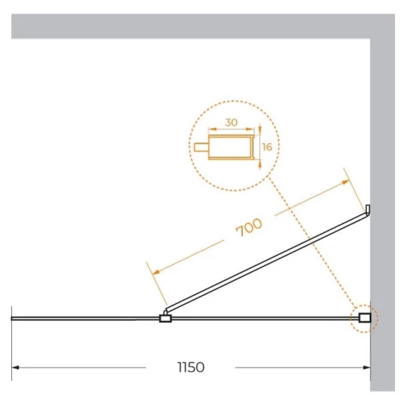 Неподвижная перегородка 115 см Cezares LIBERTA-L-1-TB-115-C-Cr прозрачное