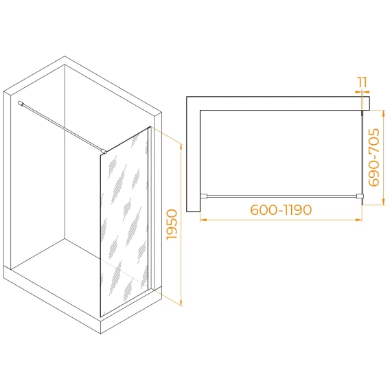 Неподвижная перегородка 70 см RGW WA-002G Walk-in 35100207-16 прозрачное