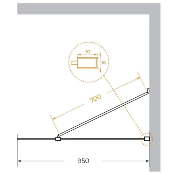 Неподвижная перегородка 95 см Cezares LIBERTA-L-1-TB-95-C-NERO прозрачное
