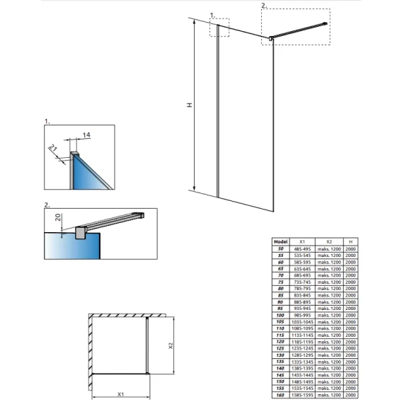 Неподвижная перегородка Radaway Modo New Brushed Nickel II 160 389164-91-01 прозрачное