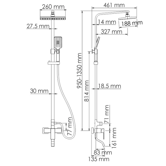 Аэратор, Металлическая розетка, Эксцентрики, Душевой шланг, Душевая лейка, Держатель для душевой лейки, Верхний душ, Смеситель, Кронштейн, Штанга душевая