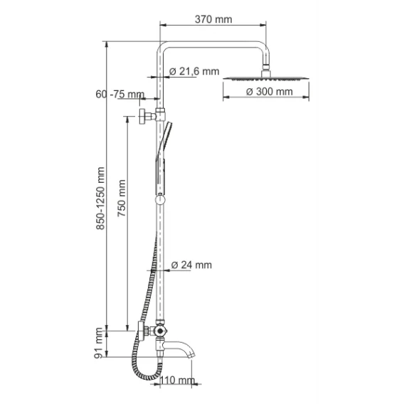 • Стойка для душа, Ø 22 мм регулируемая по высоте