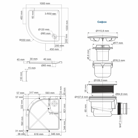 Панель для поддона, Металлический каркас, Сифон, Ножки