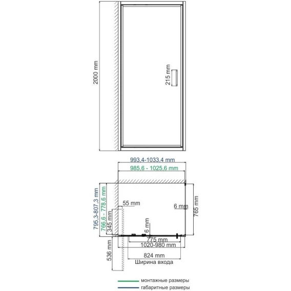 Душевой уголок 100x80 см WasserKRAFT Salm 27I17 прозрачное