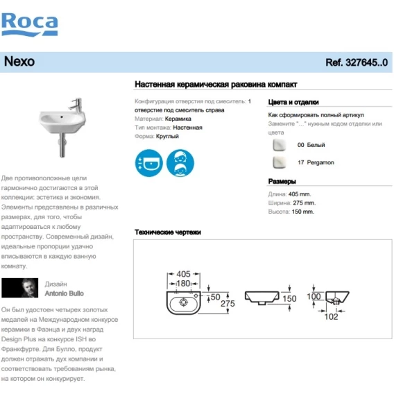 Установка-подвесная Форма-прямоугольная Материал-фаянс Отверстия под смеситель-1, расположение справа Отверстие под перелив-есть