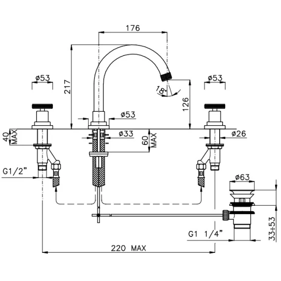 Смеситель для раковины с донным клапаном Nicolazzi Arena 3328OG44