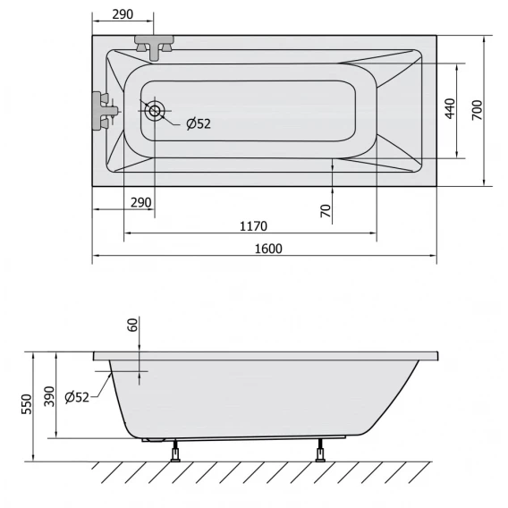Акриловая ванна 160x70 см Alpen Noemi 71707