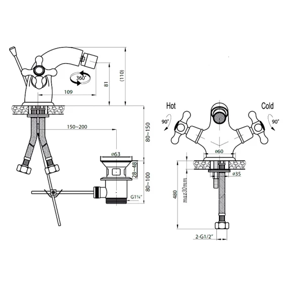 Крепление, Аэратор, Гибкая подводка, Донный клапан