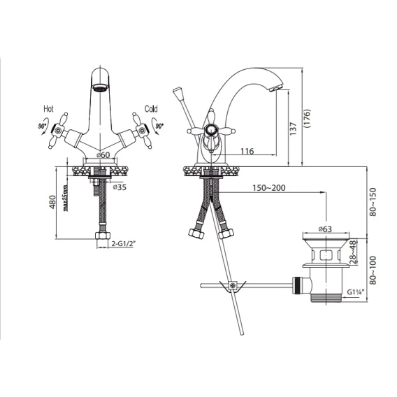 Крепление, Аэратор, Гибкая подводка, Донный клапан