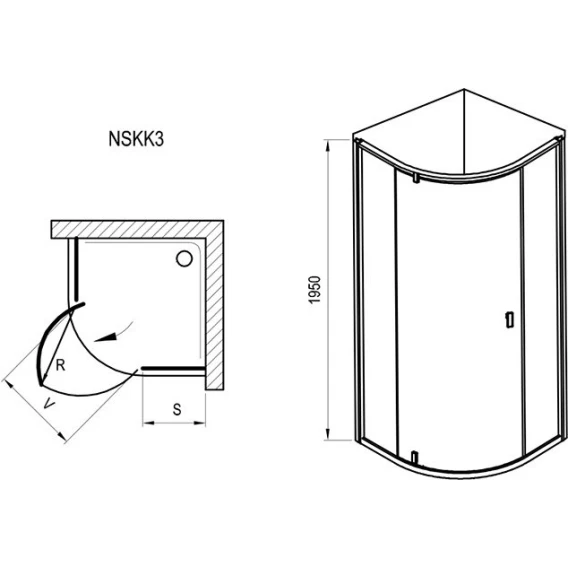 Размеры с диапазоном регулировок: 970-995x970-995x1950 мм