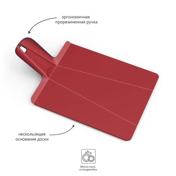 Уникальная складная доска, которая принесла бренду Joseph Joseph мировую известность и ряд престижных наград. В плоском состоянии она предоставляет надёжную поверхность для разделывания любых продуктов. В результате лёгкого сжатия рукоятки края доски аккуратно складываются, образуя удобный совок, который позволит аккуратно переложить нарезанные ингредиенты в нужную ёмкость.Обновлённая версия этого прибора включает сразу несколько бонусов. Среди них — текстурная поверхность для резки, мягкая прорезиненная рукоятка и нескользящая основа.Можно мыть в посудомоечной машине.