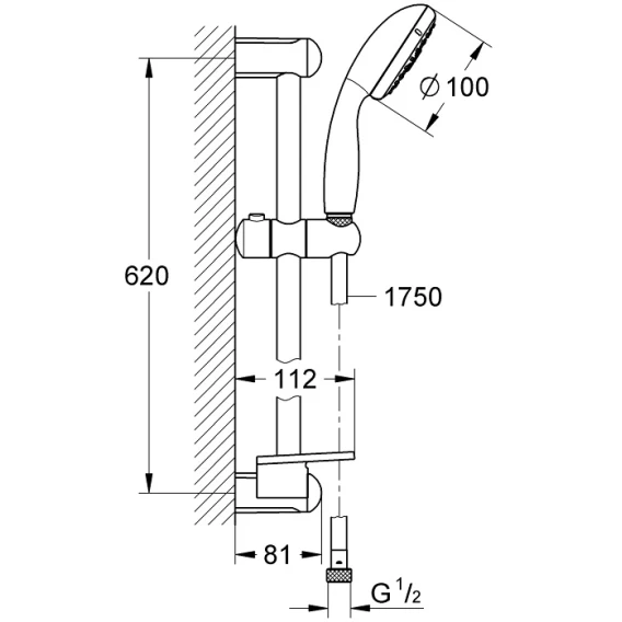 Душевой шланг, Душевая лейка, Держатель для душевой лейки, Полочка, Штанга душевая
