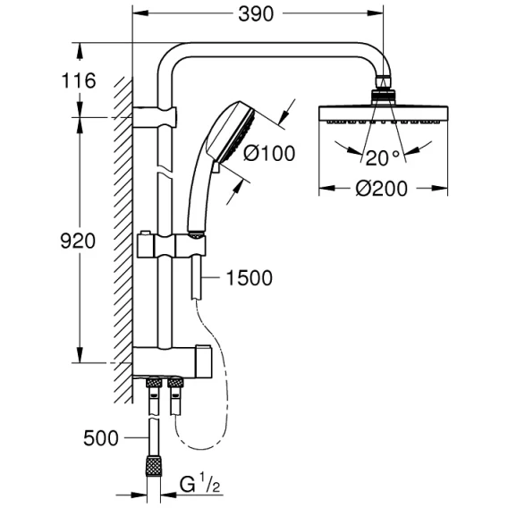 • гибкая установка: подклюяение к смесителю / подключению для душевого шланга с резьбой 1/2" душевым шлангом 500 мм