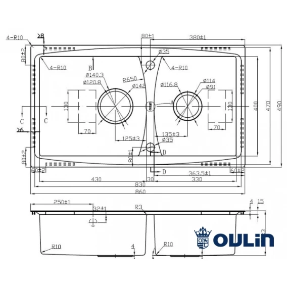 Кухонная мойка Oulin матовая сталь OL-H9910