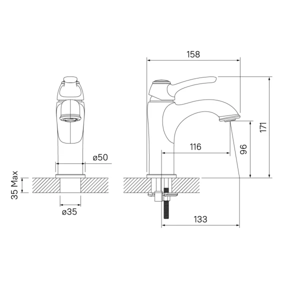 Смеситель для раковины Cezares ECO-LC-01-W0 без донного клапана, хром