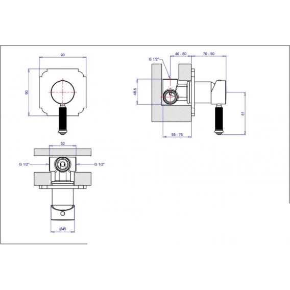 Смеситель для душа золото 24 карата Cezares Olimp OLIMP-DIM2-03/24-L