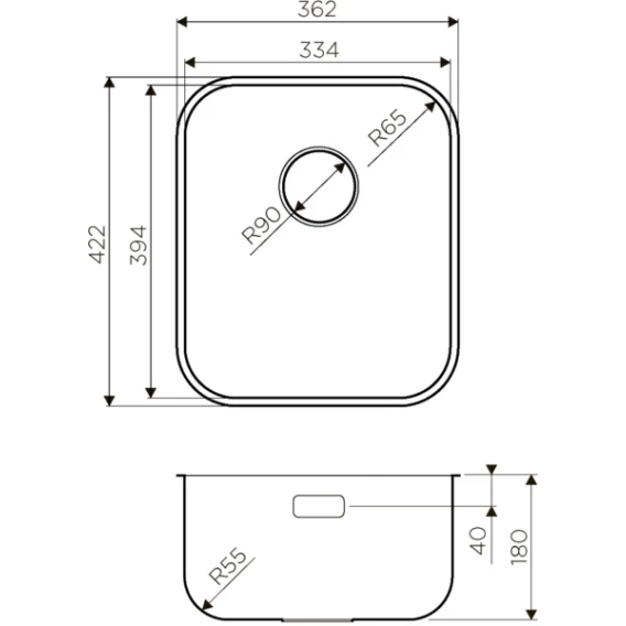 • Размер выреза под мойку: 334х394 мм., угловой радиус врезки 70 мм.
