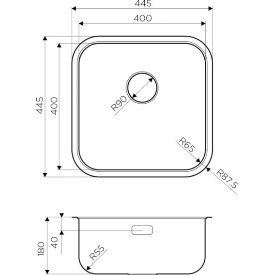 • Размер выреза под мойку: 400х400 мм., угловой радиус врезки 70 мм.
