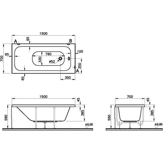 Акриловая ванна 150x70 см Optimum Neo 64560001000